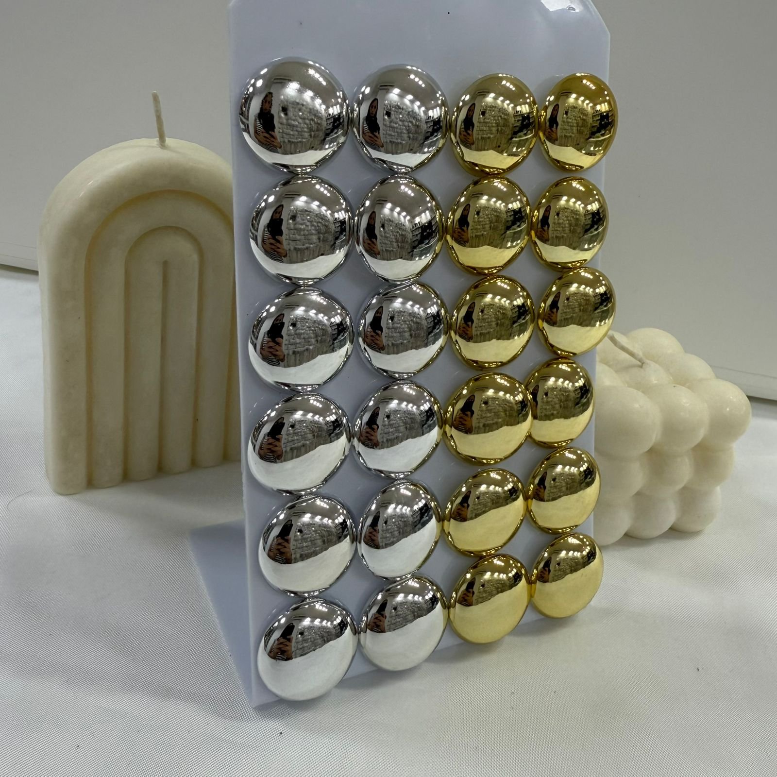 Precio por 12 pares dorados y plateados.