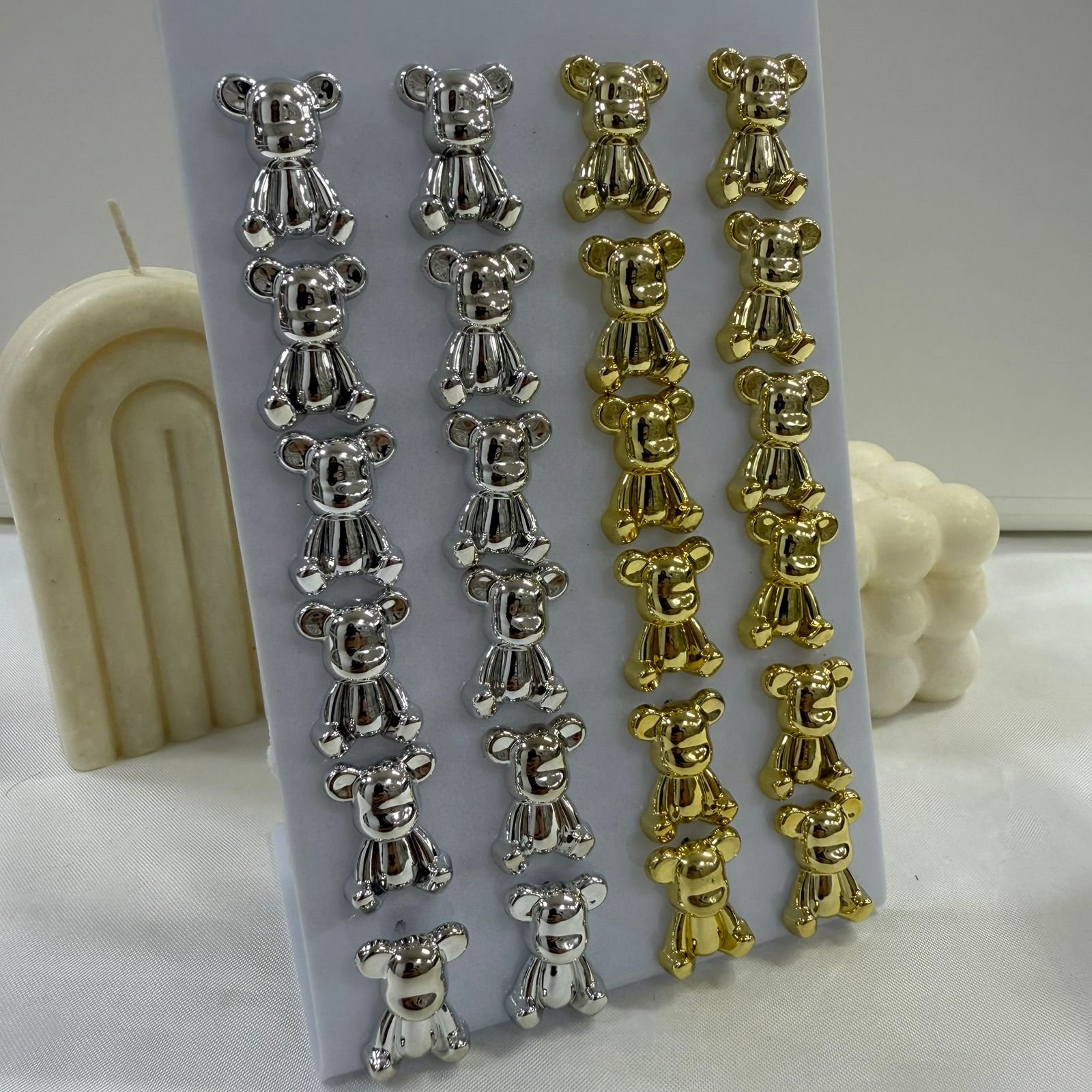 Precio por 12 pares dorados y plateados.