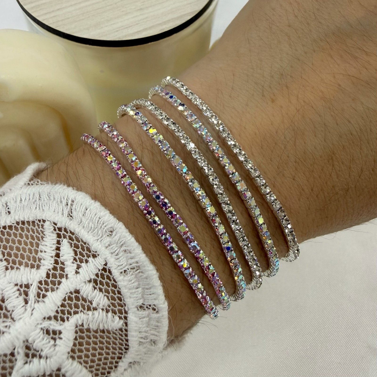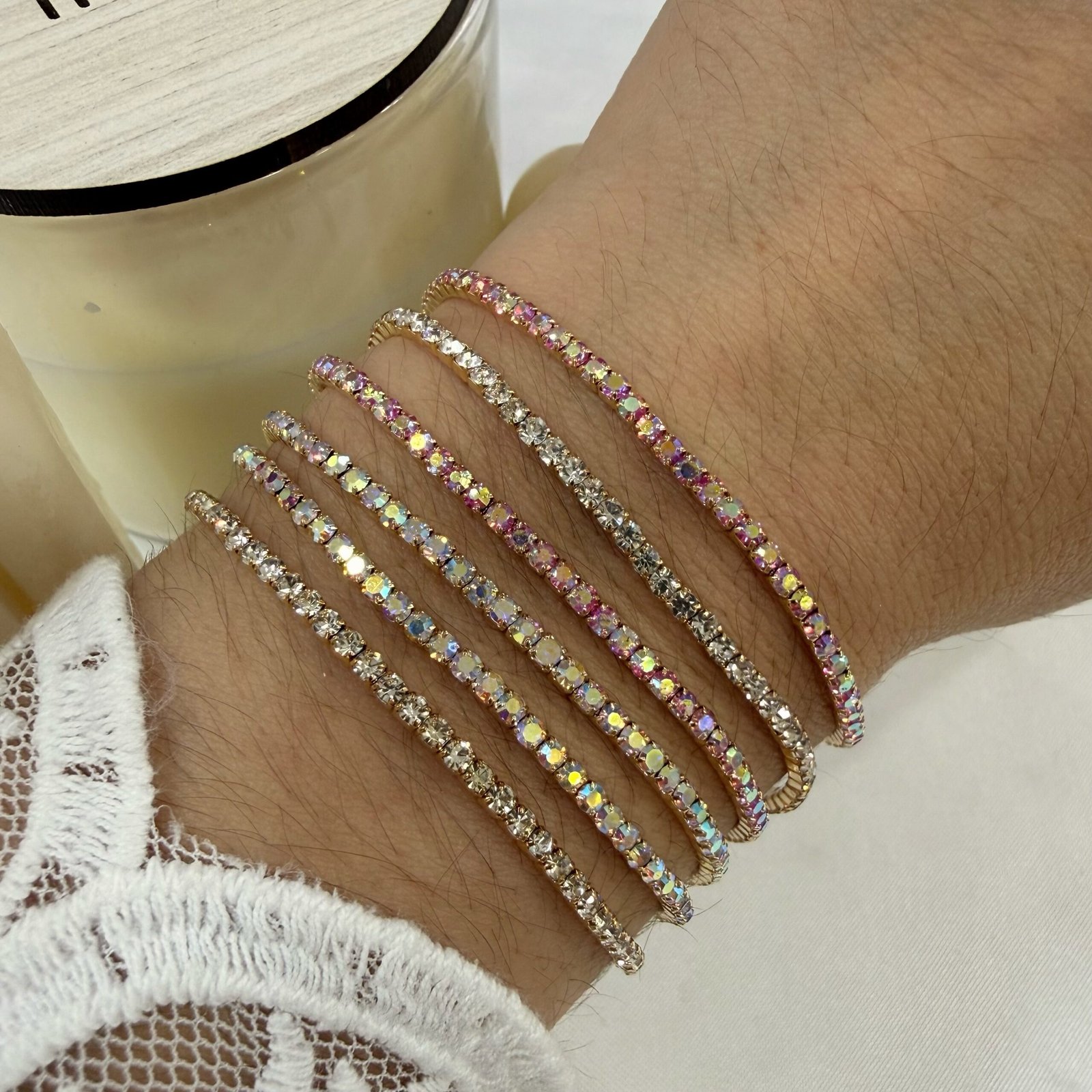 0oferta pack x 6 pulseras extensibles microzirconia.