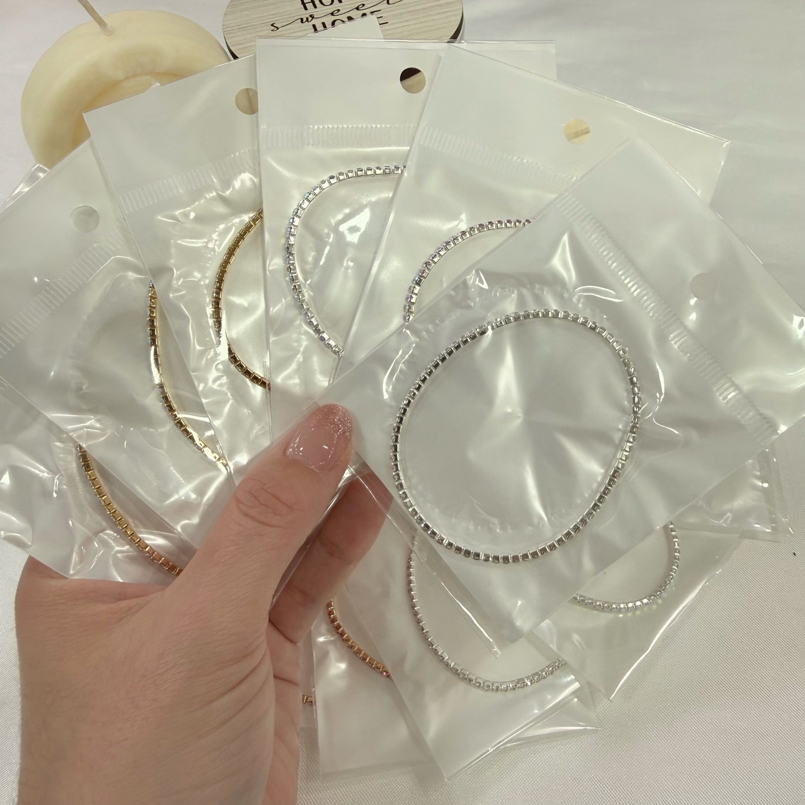 oferta pack x 6 pulseras extensibles microzirconia. (3 fondos plateadas y 3 fondos doradas). empaquetadas.