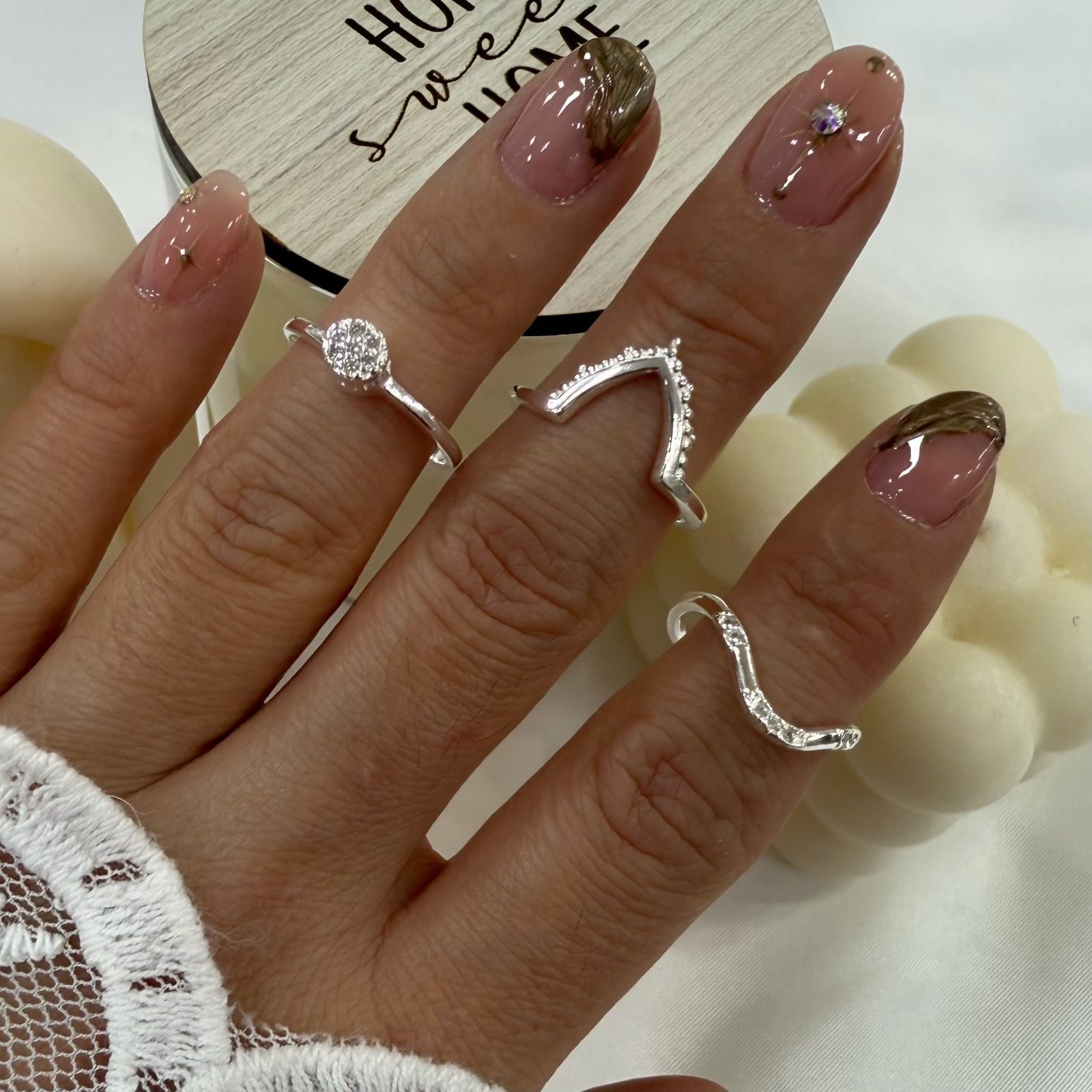 kit x 3 anillos plata, falanges talle chico 11/12