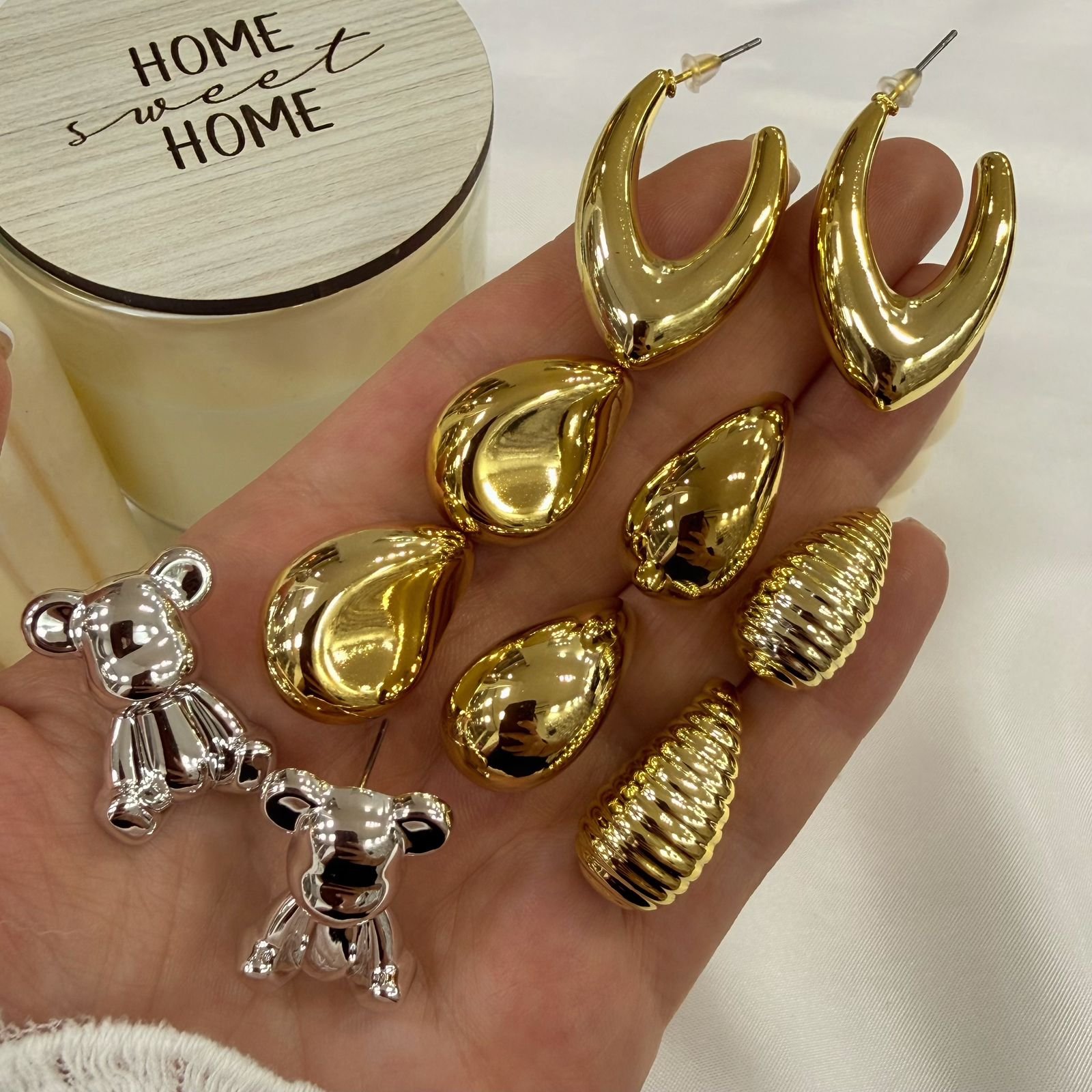 kit x 6 pares aros inflados plateados y dorados.