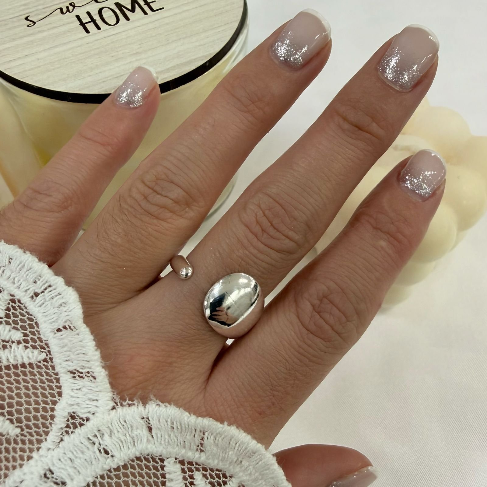 anillos acero blanco regulables. vienen medida medianos, abiertos abajo se puede regular mas chico o mas grande