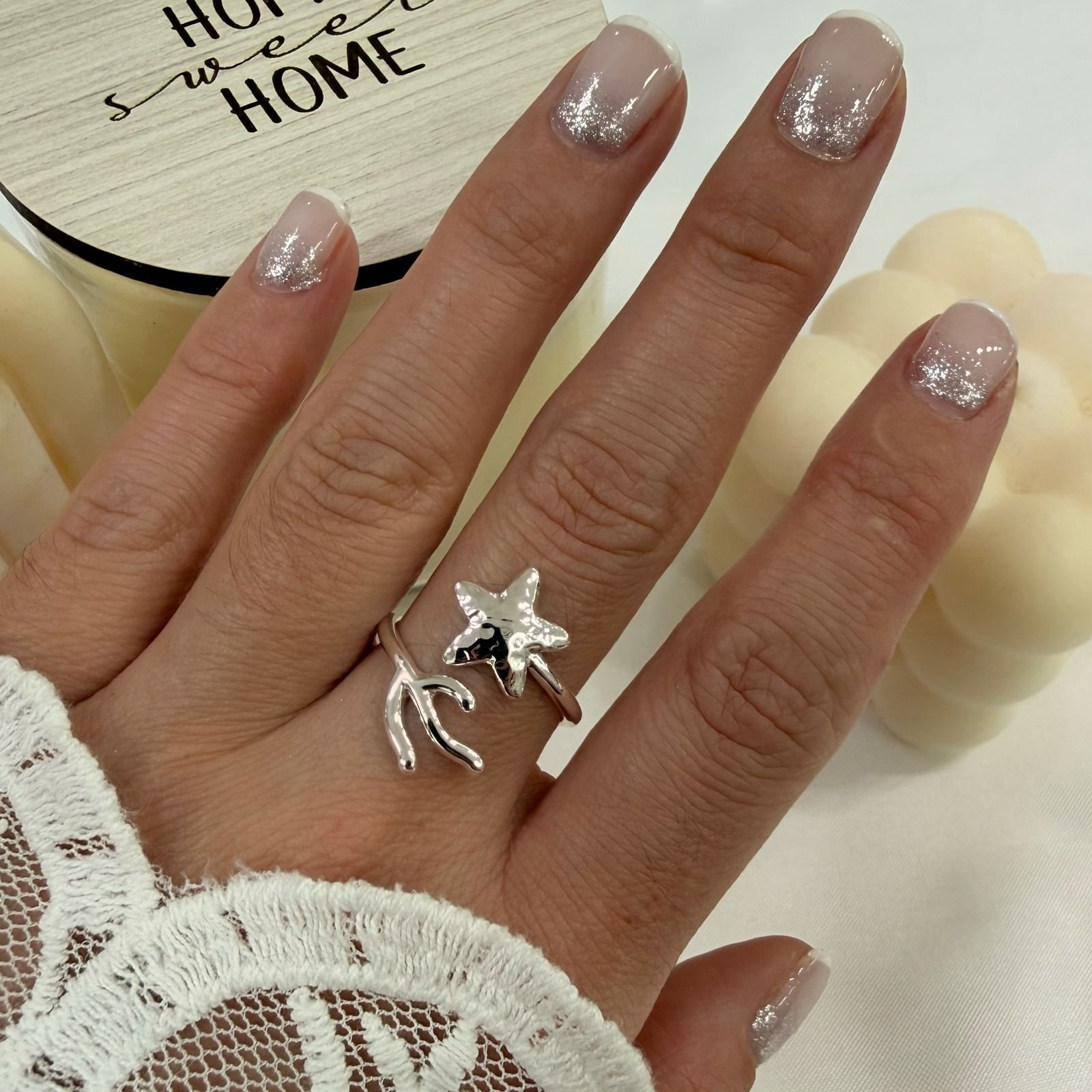 anillos acero blanco regulables. vienen medida medianos, abiertos abajo se puede regular mas chico o mas grande