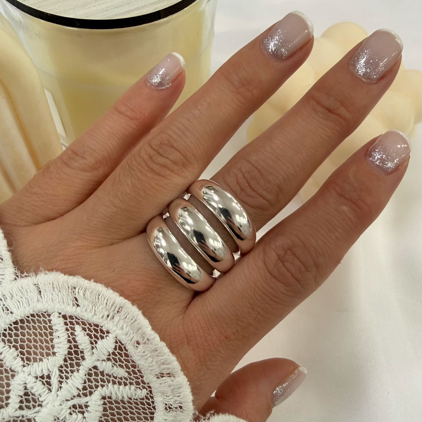 anillos acero blanco regulables. vienen medida medianos, abierto abajo se puede regular mas chico o mas grande