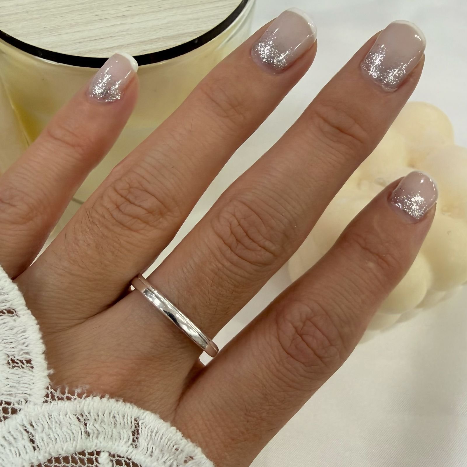 anillos acero blanco, cubiertos con lamina plata 1000.