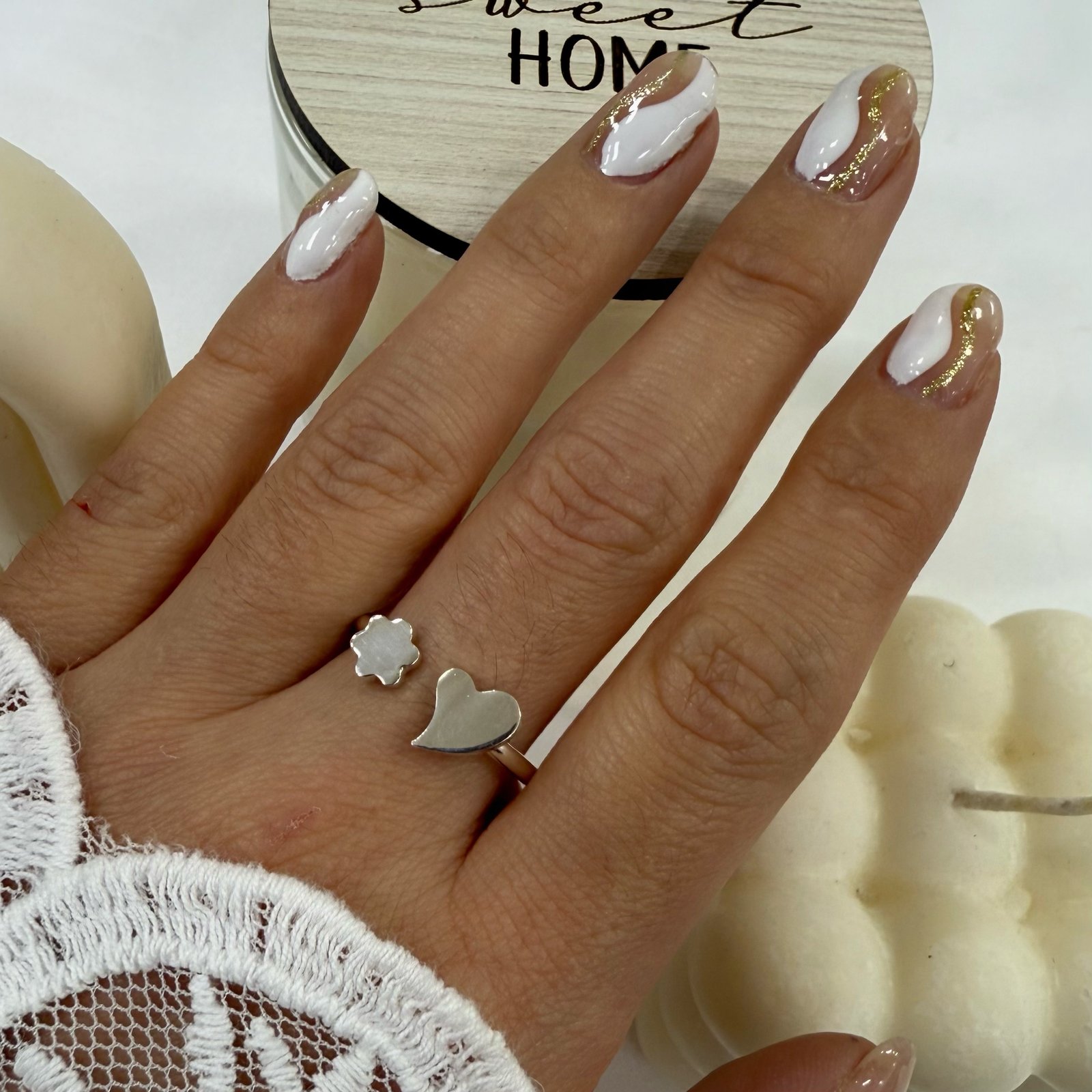 a Anillo liso regulable corazon flor