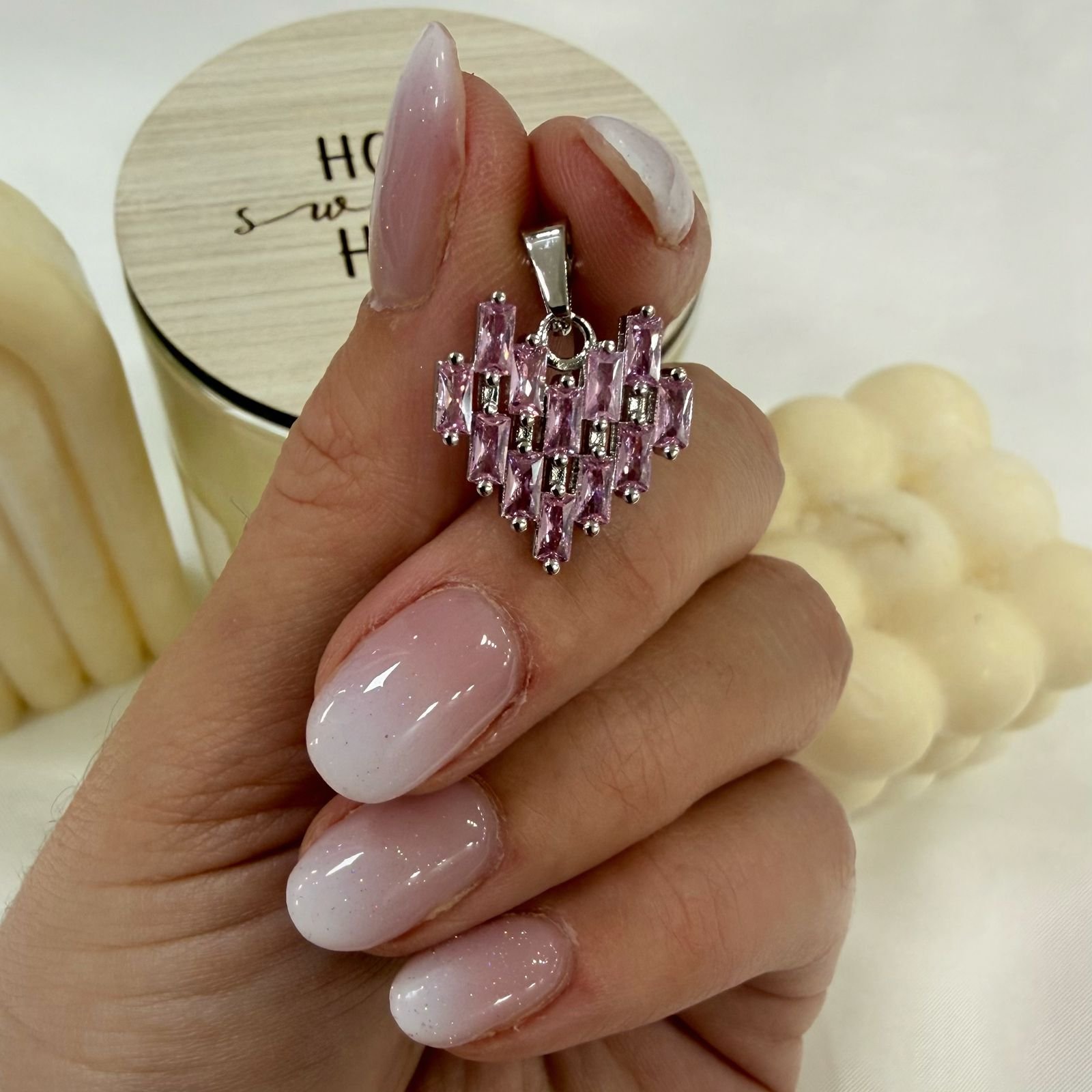a dije a corazon cubics baguette rosa a.q