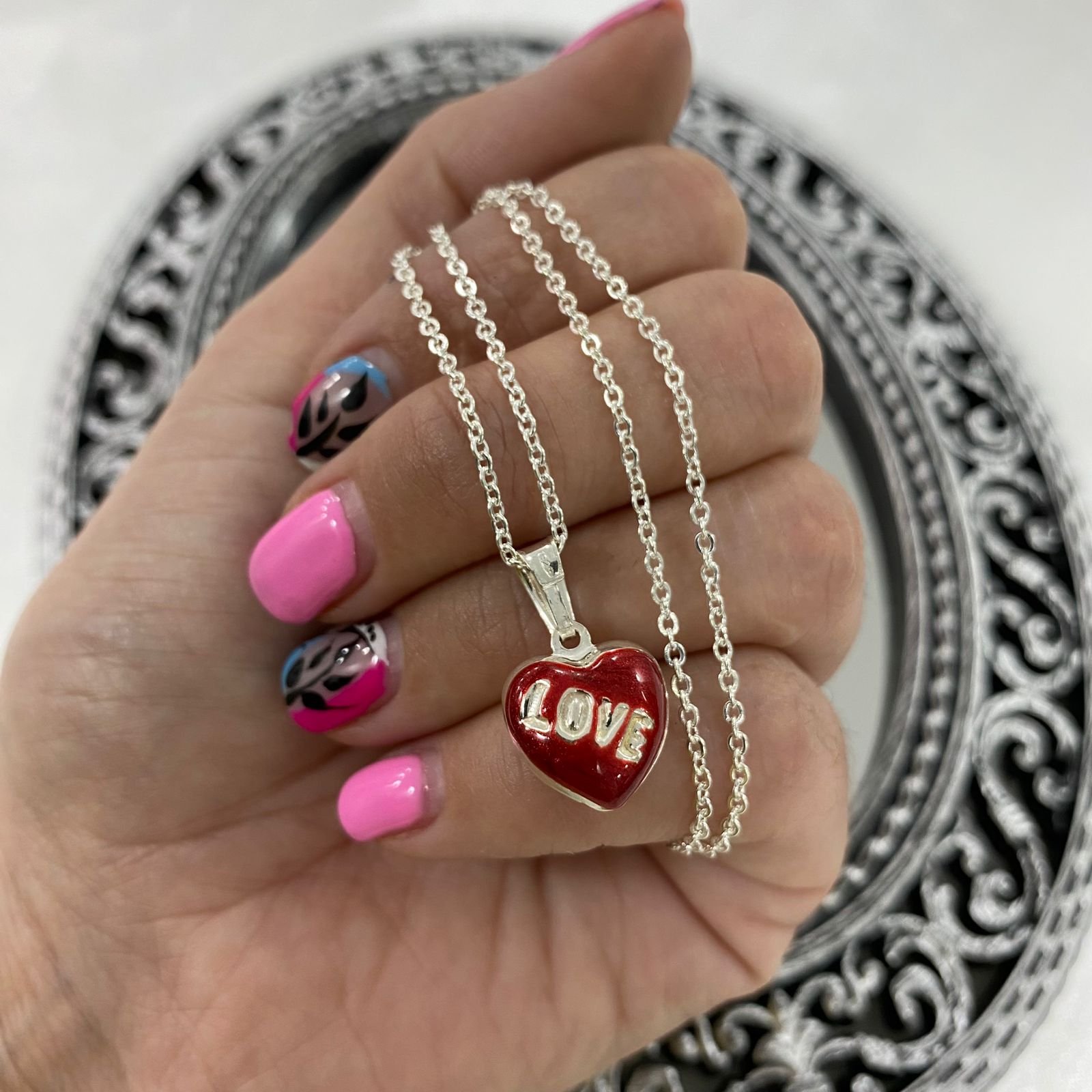 A Dije corazon love plata 925 con cadena acero blanco de regalo