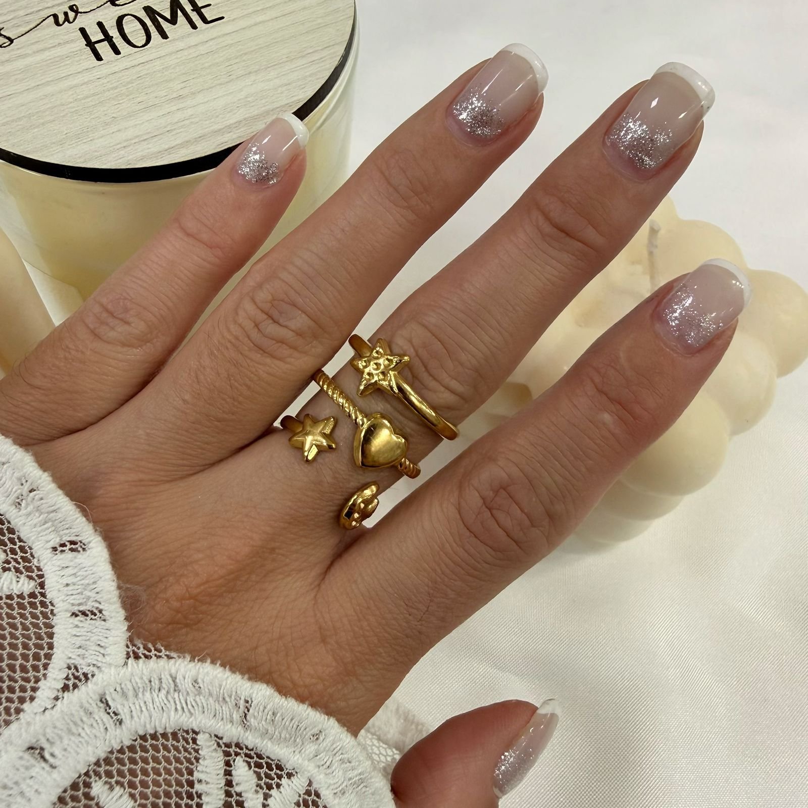 anillos acero dorado regulables. Talles medianos Abierto abajo se puede regular mas chico o mas grande