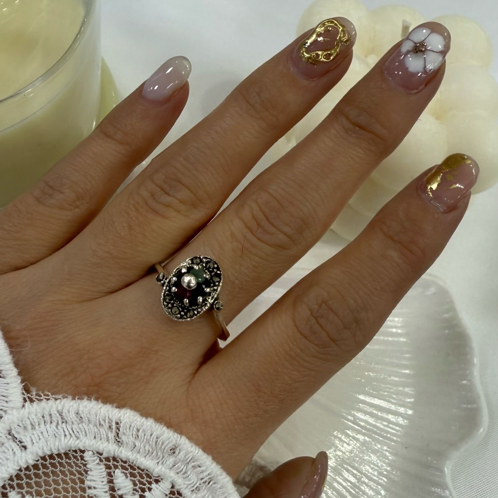 anillo plata 925. Raiz rubi, esmeralda, zafiros y marquesitas.