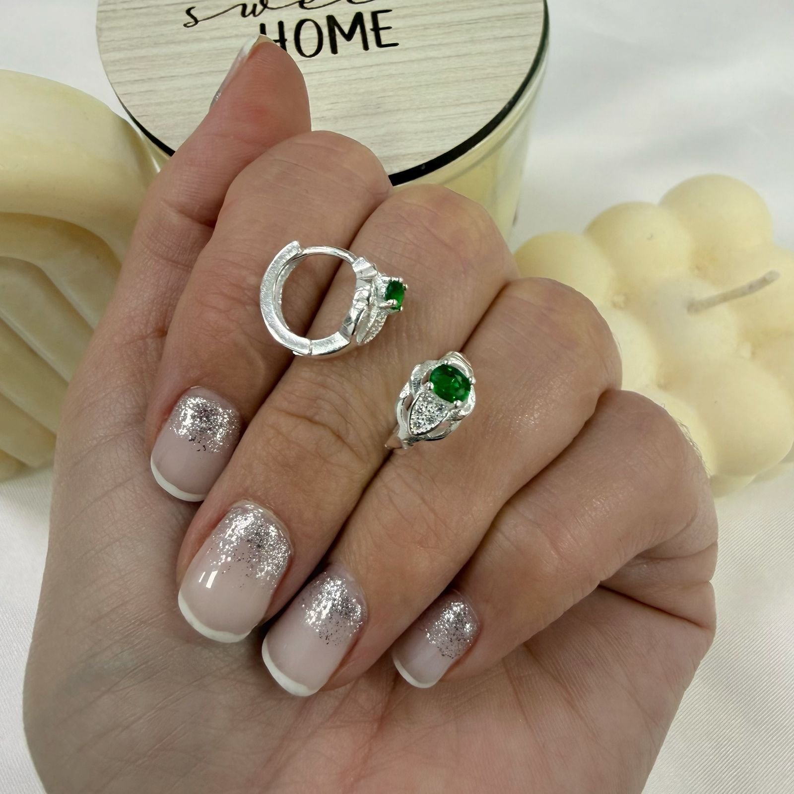 Aros Plata 925 con microzircon y raiz esmeralda