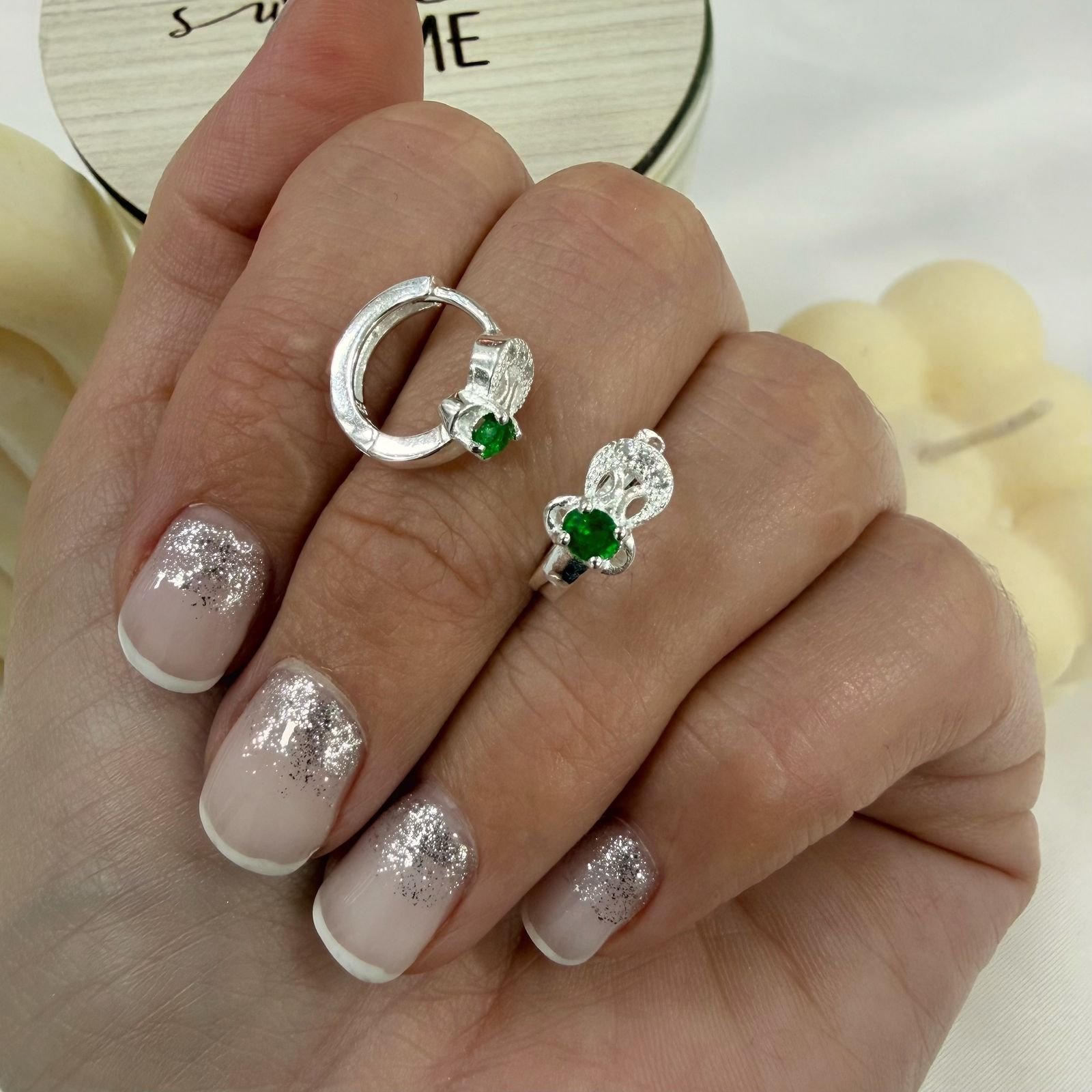 Argollas huggies cubic raiz esmeralda 6