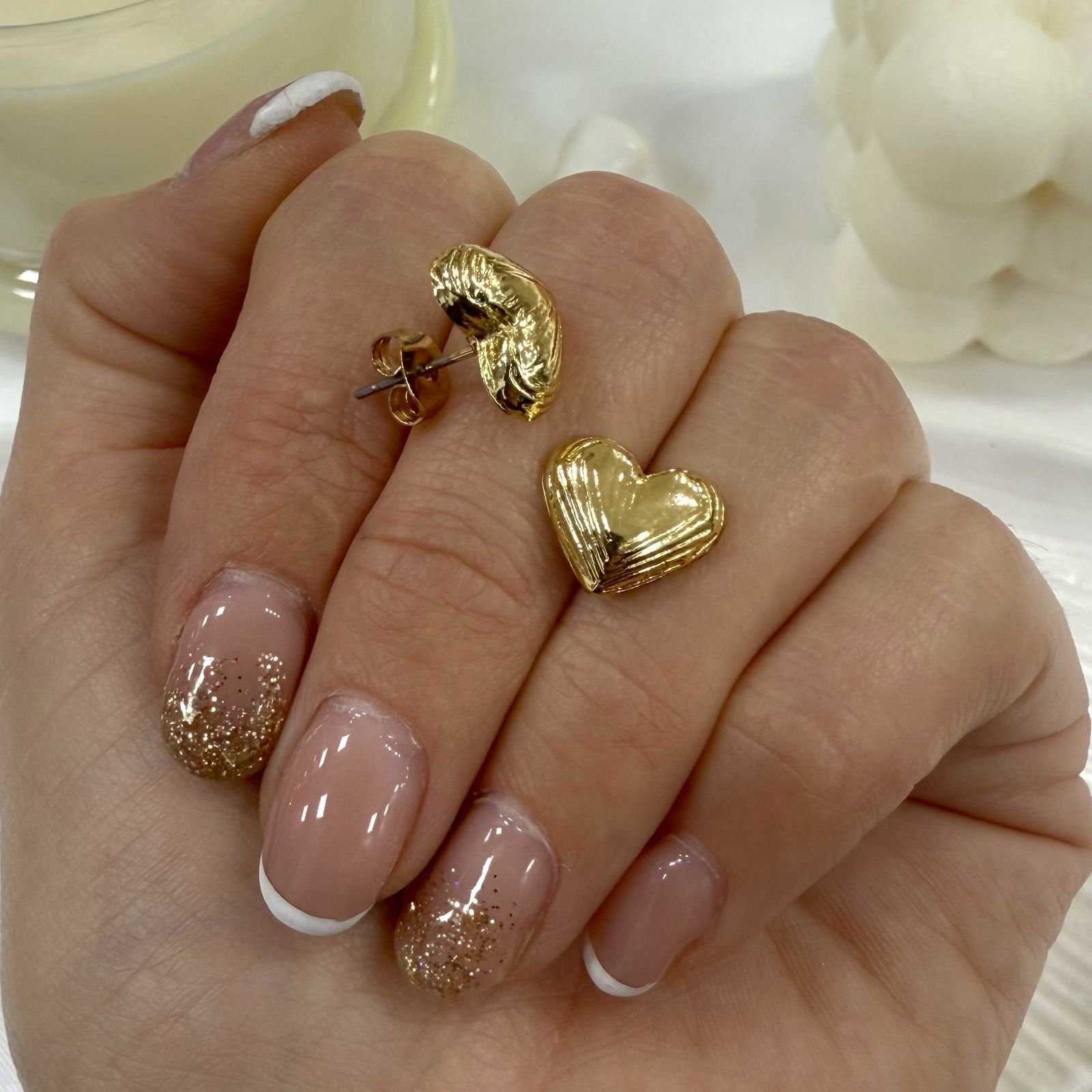 aros dorados, pasante de acero.