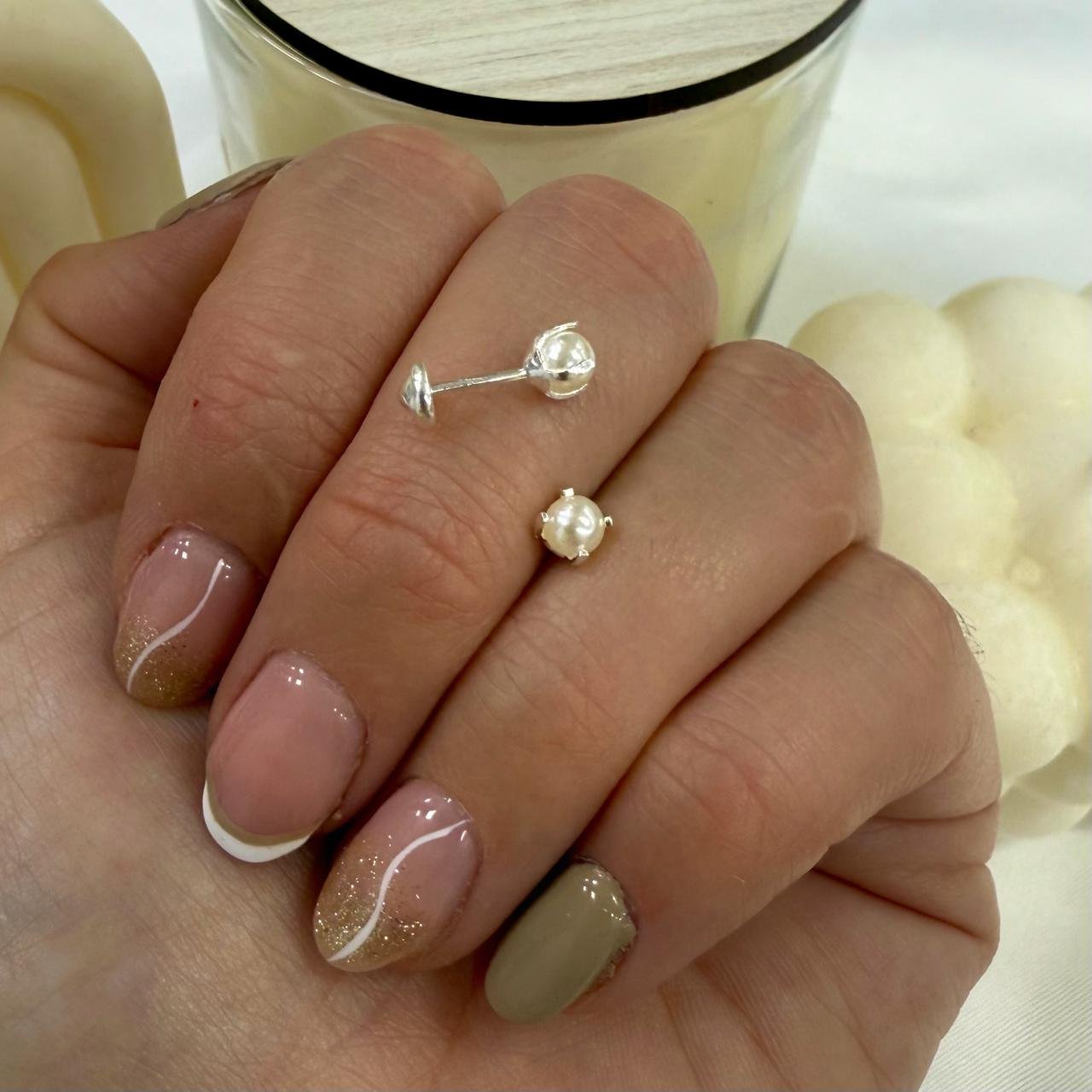 Aros Abridores perla engarzada chica