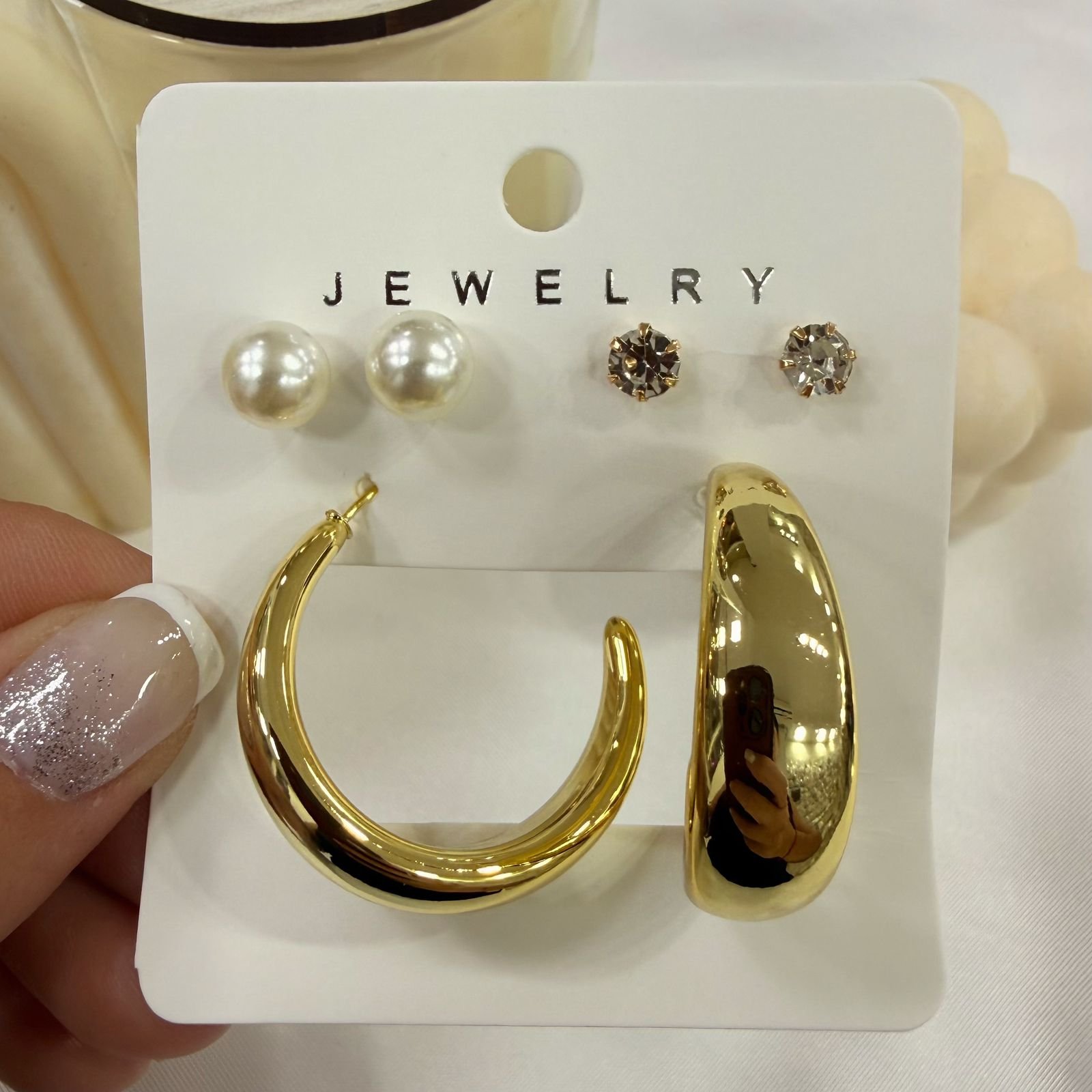 aros dorados pack x 3 pares mod 3