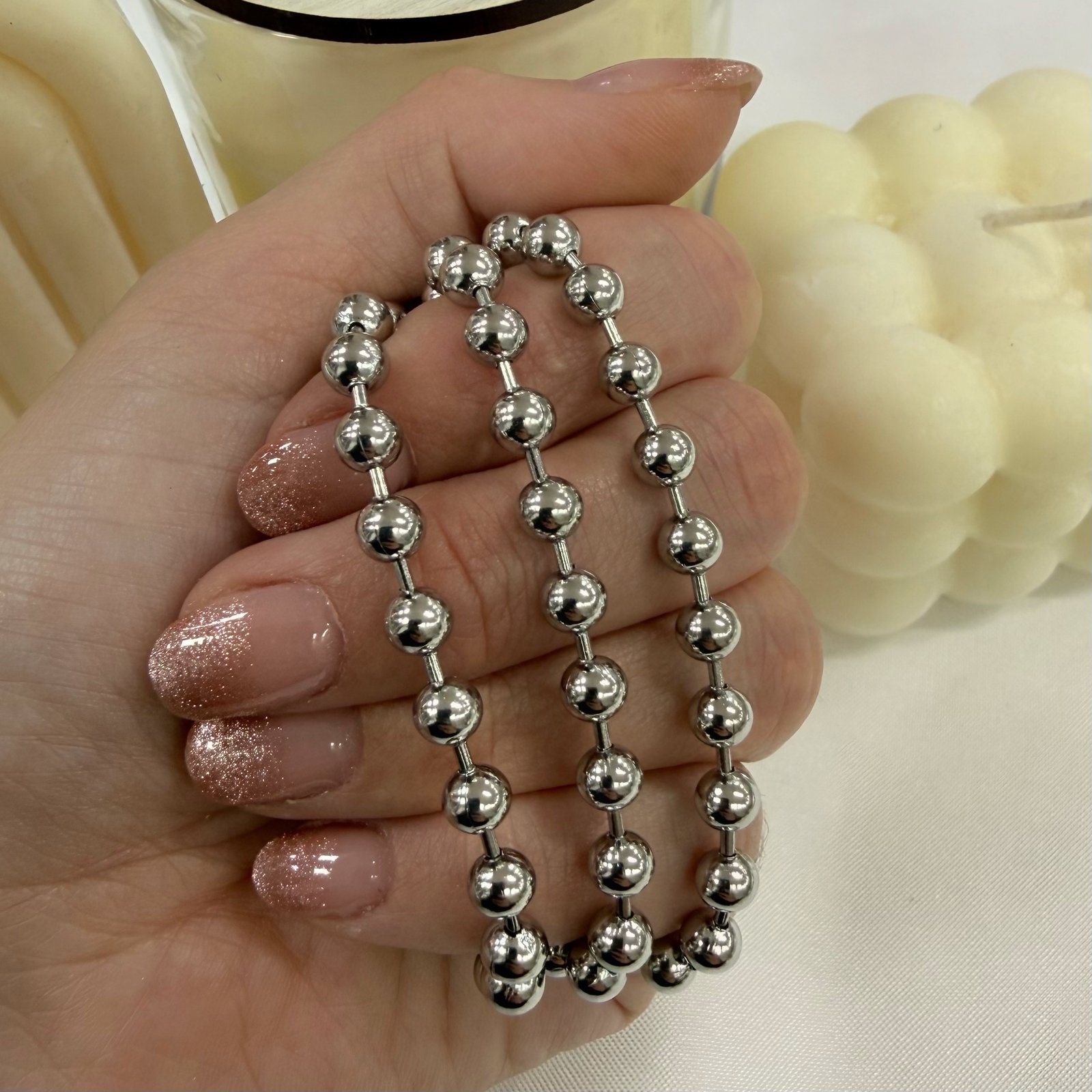 cadena bolitas x 50cm a.q grosor 2