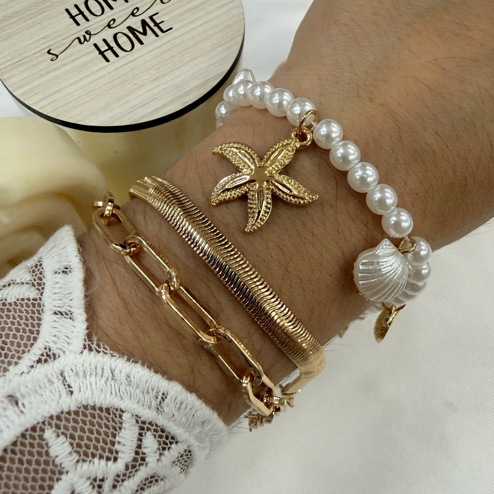 carton x 3 pulseras doradas mod 7