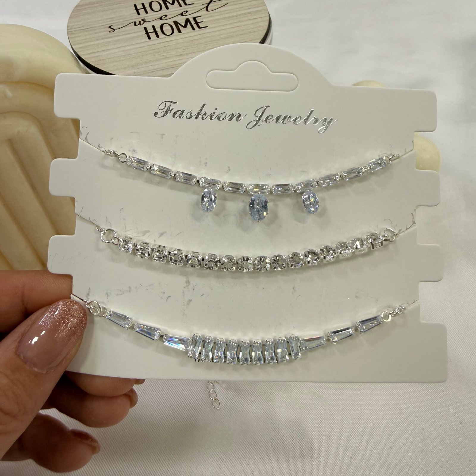 carton x 3 pulseras plateadas zircones mod 7