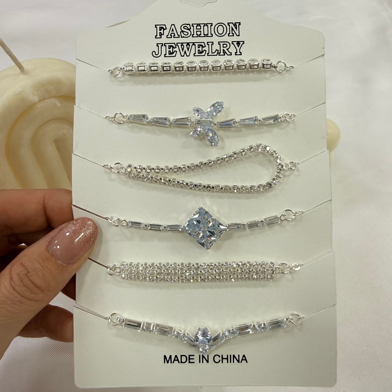 carton x 5 pulseras plateadas zircones mod 14