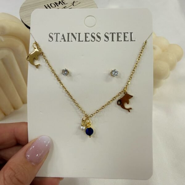 conjunto con dije dolphin cubic y aros dorado