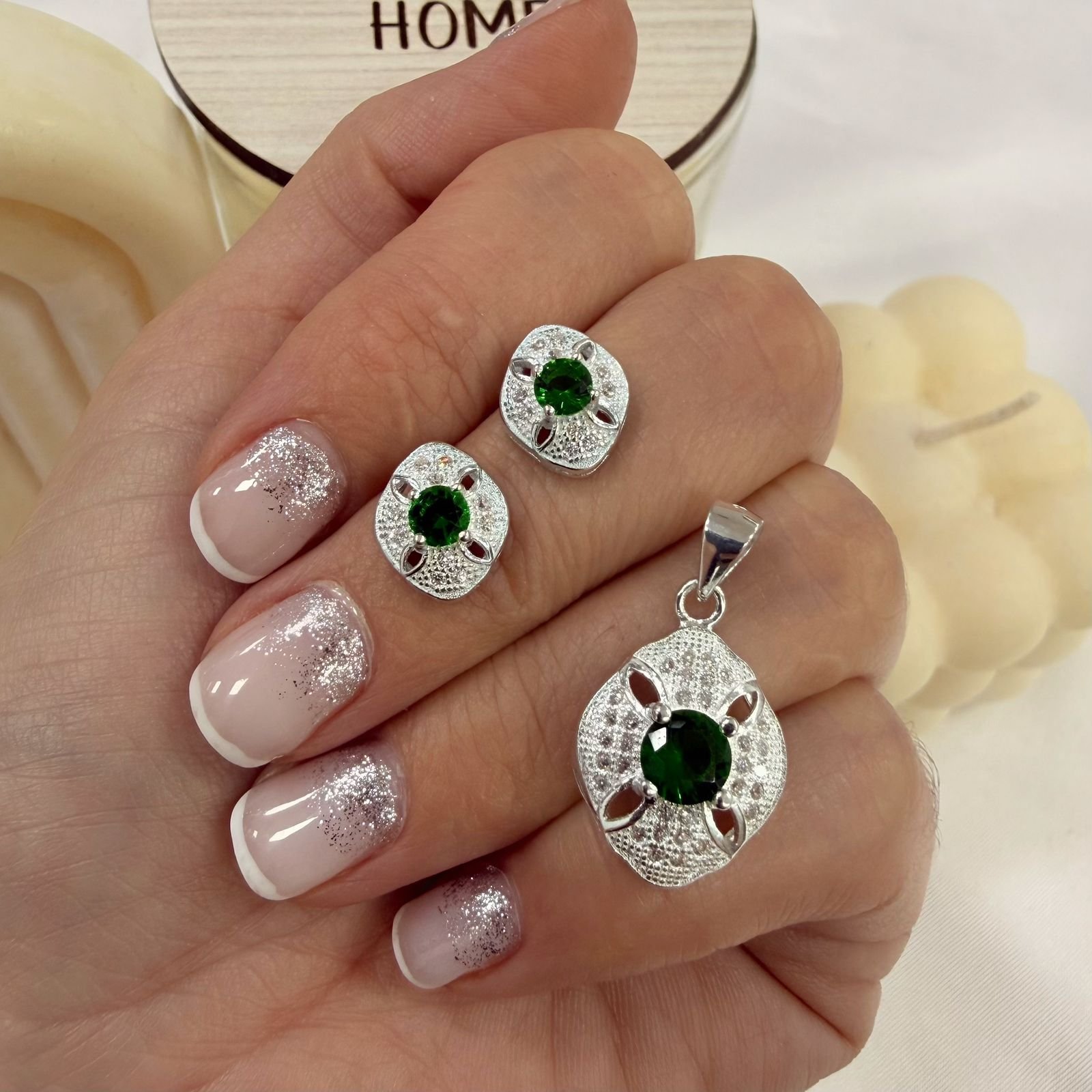 conjunto plata 925 dije y aros cubic esmeralda mod 5