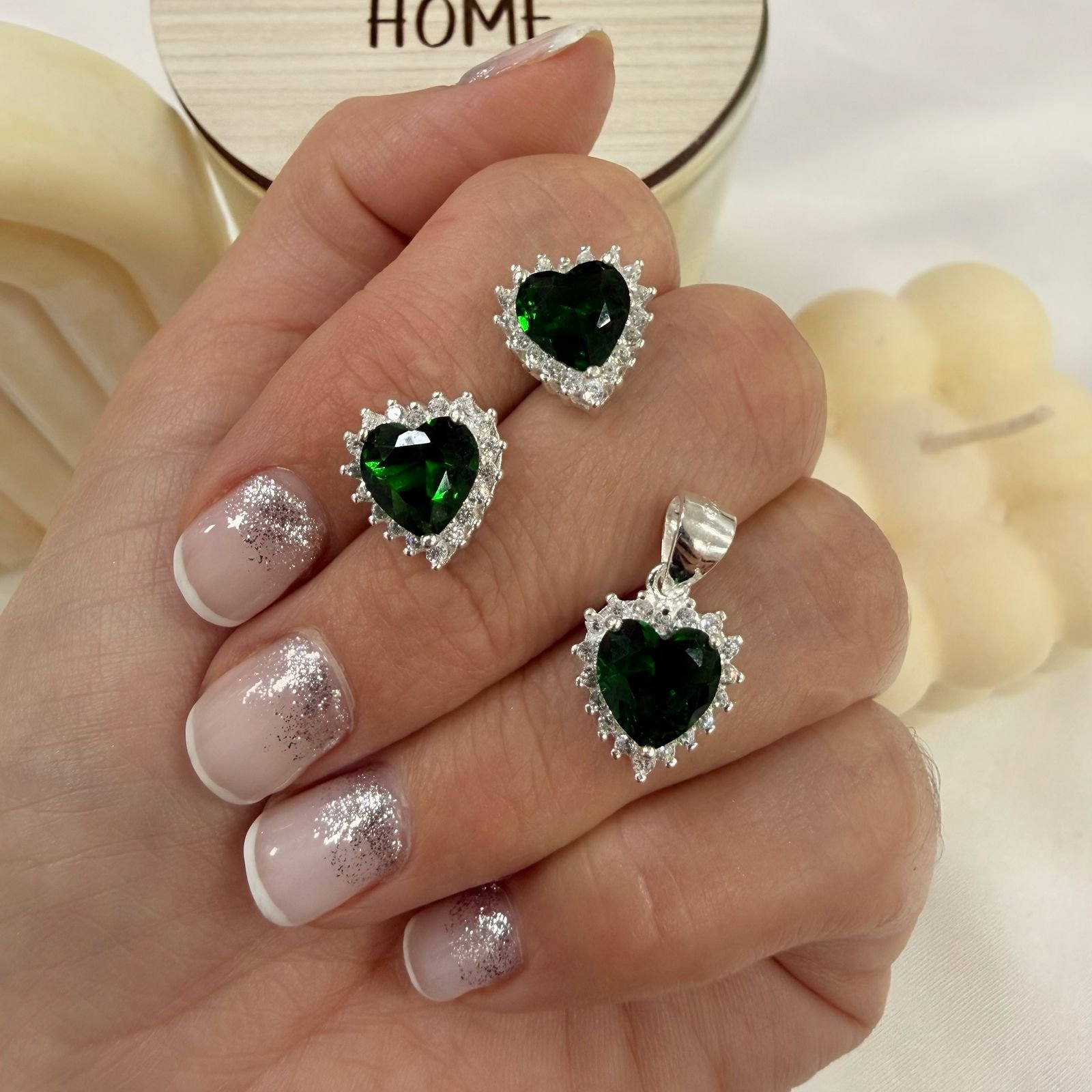 conjunto plata 925 dije y aros cubic esmeralda mod 9