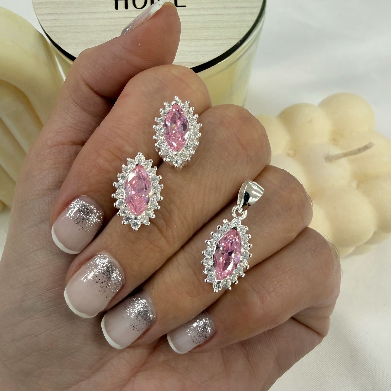conjunto plata 925 dije y aros cubic rosa mod 2