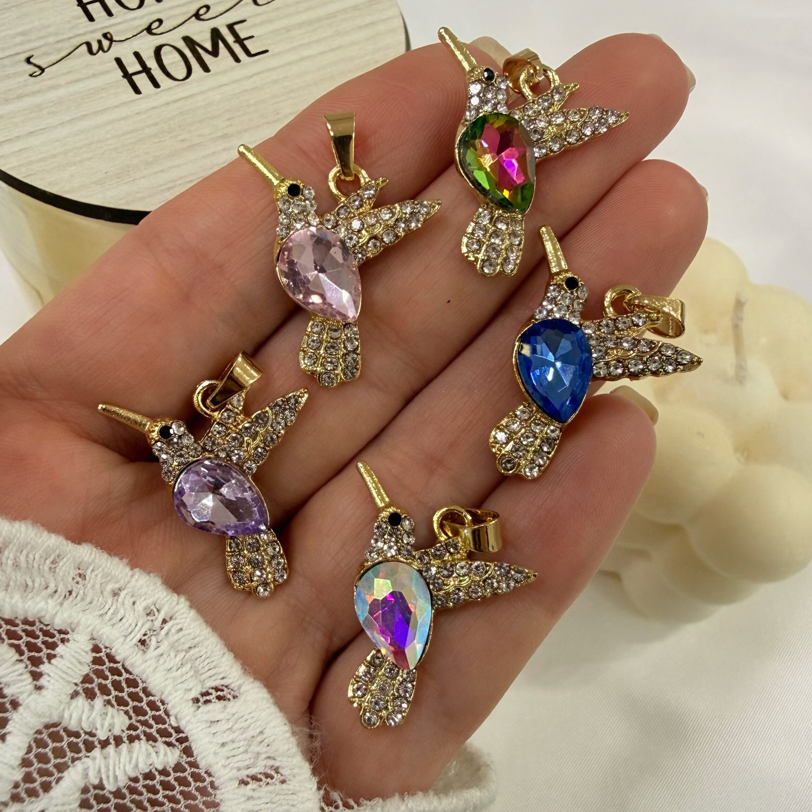 dije colibri colores varios dorado