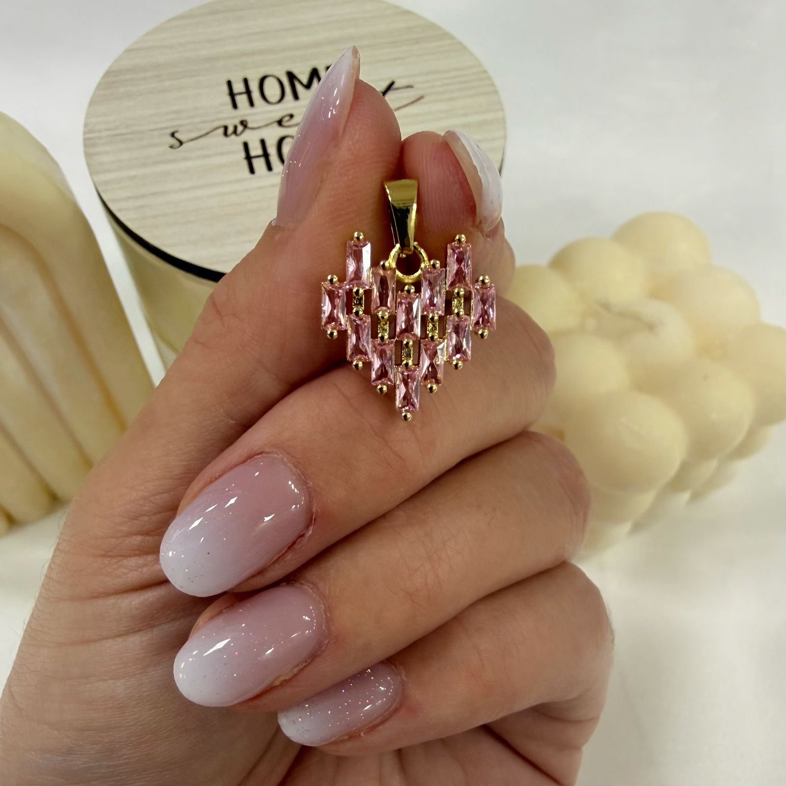 dije corazon cubic baguettes rosa dorado
