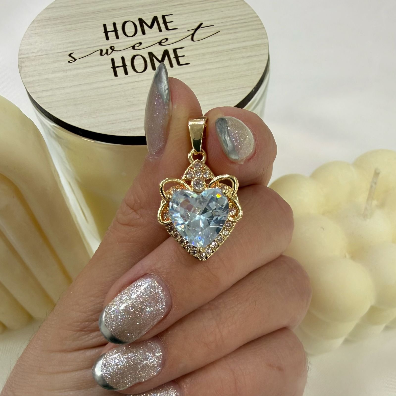 dije corazon cubic blanco dorado