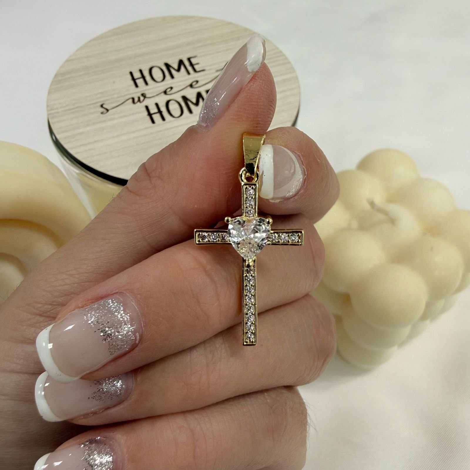 dije cruz cubic blanco dorado
