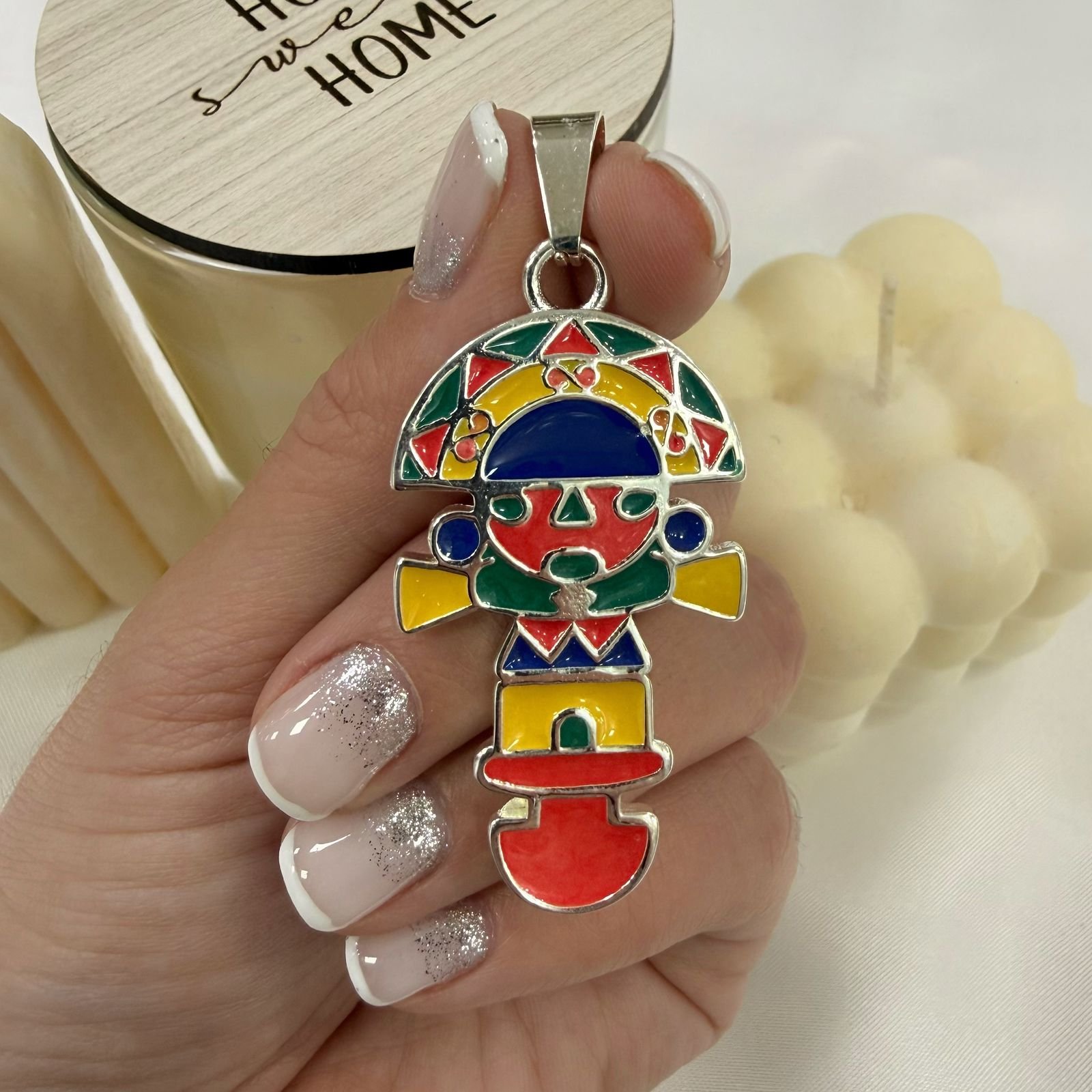 Dije Azteca Totem Esmaltado Con Colores
