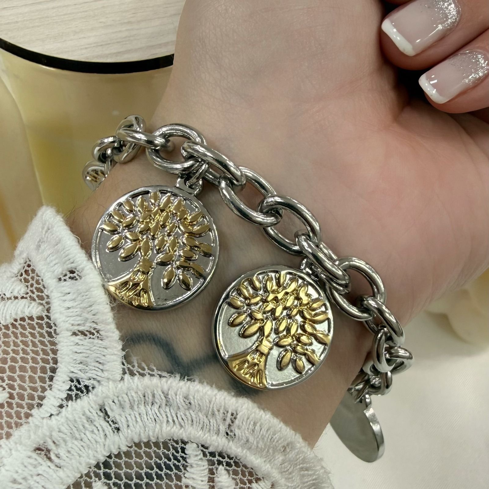 Pulsera De Acero Quirùrgico Con Varios Dijes De Arbol