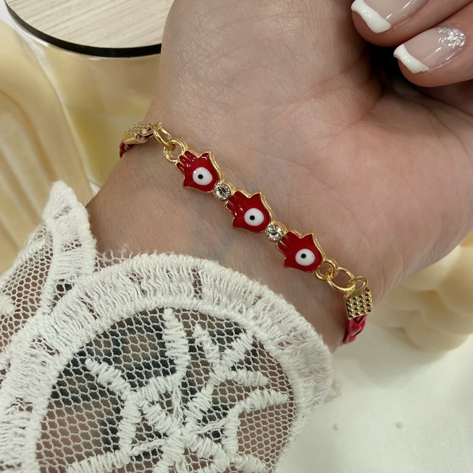 pulsera dorada modelo mano ojito