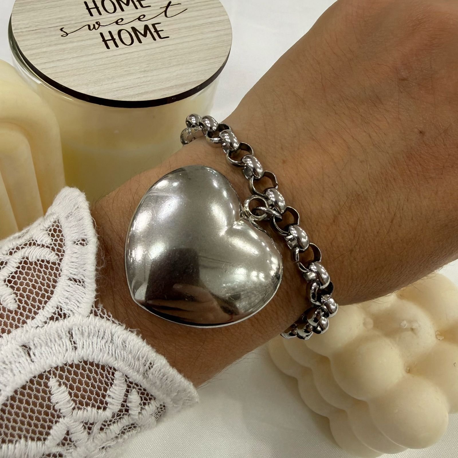 pulsera rolo con dije corazon inflado