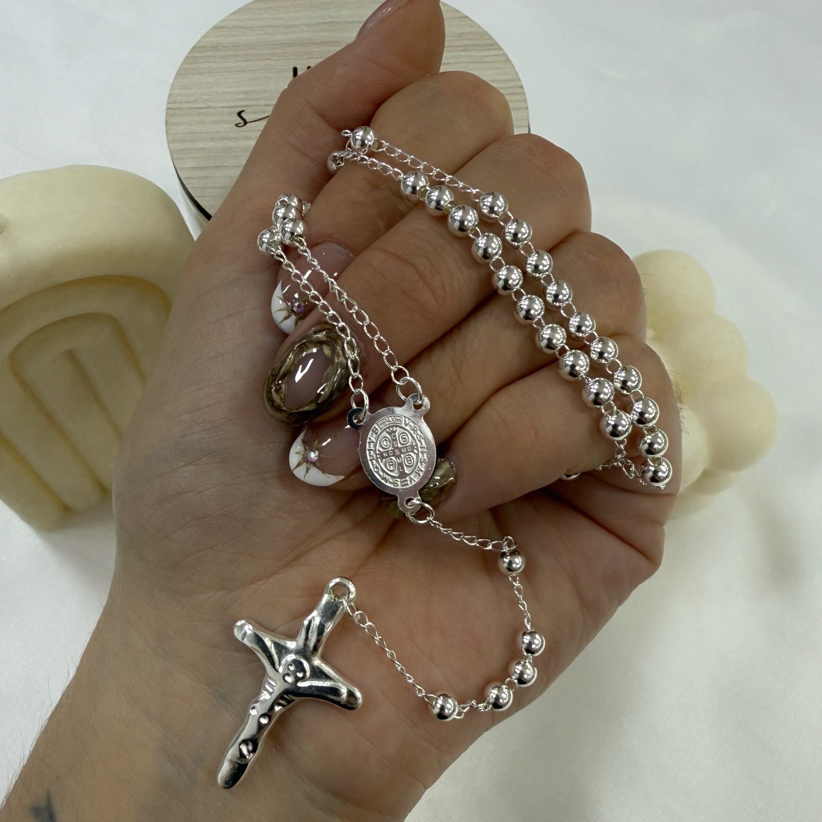 rosario acero blanco 50cm