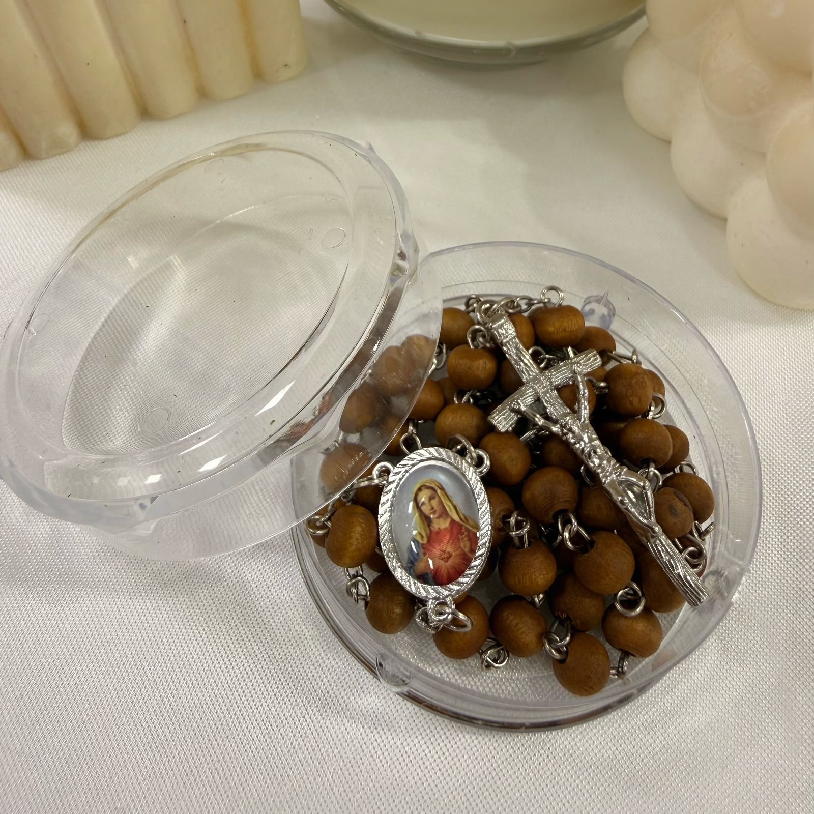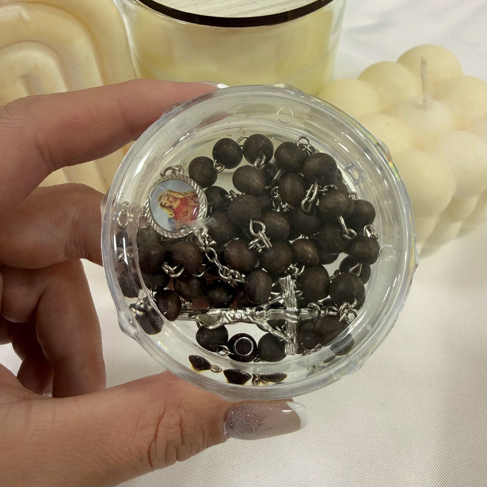 rosarios perfumados con cajita marron clarito