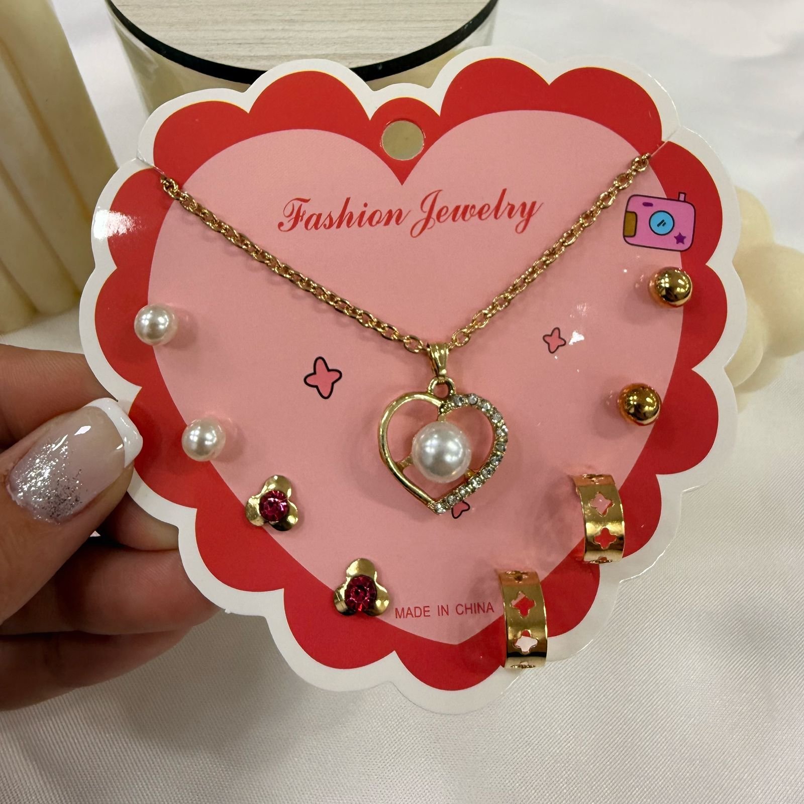 set con cadena dijes y 4 pares aros mod 3