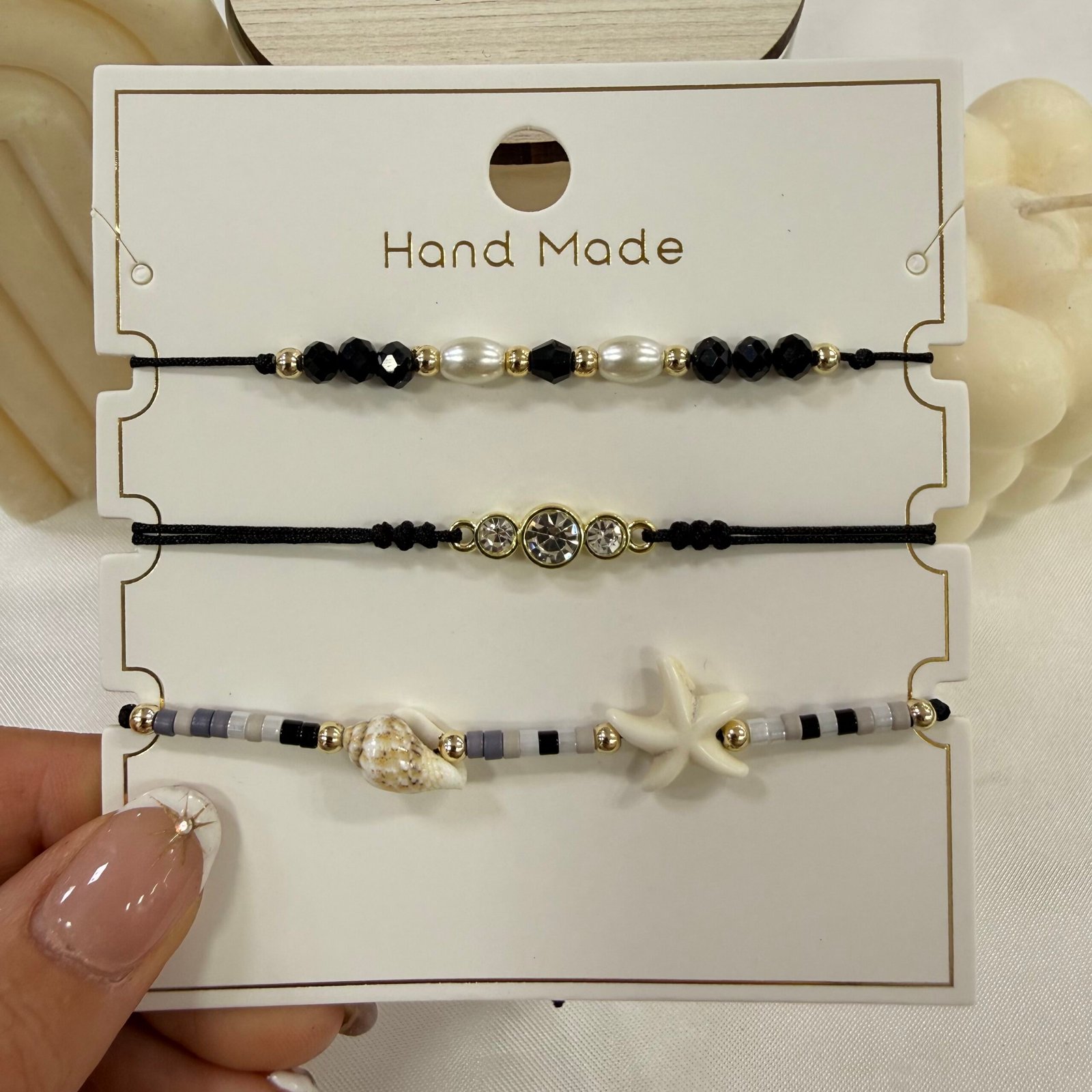 set x3 pulseras hilo ajustable con bolitas facetadas y dije.