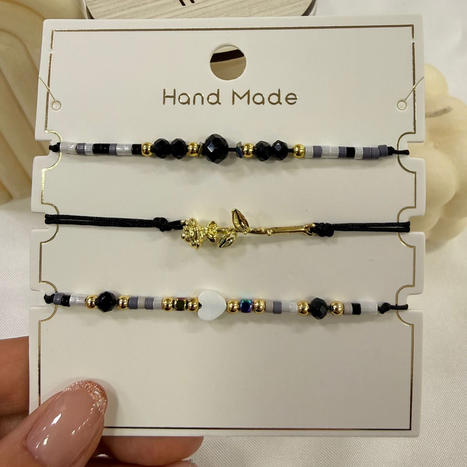 set x 3 pulseras extensibles encartonadas rosilla negra