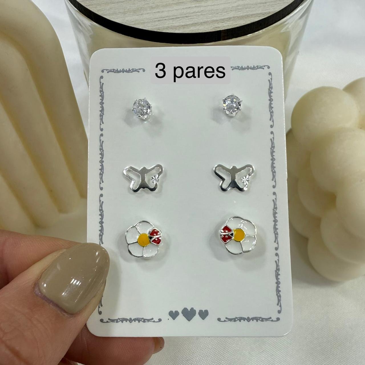 trios aros esmaltados mod B ( x 3 pares)